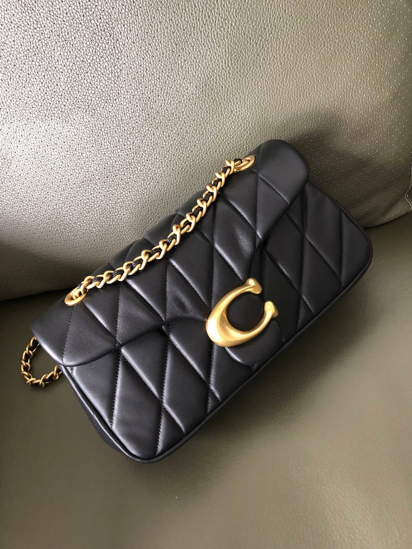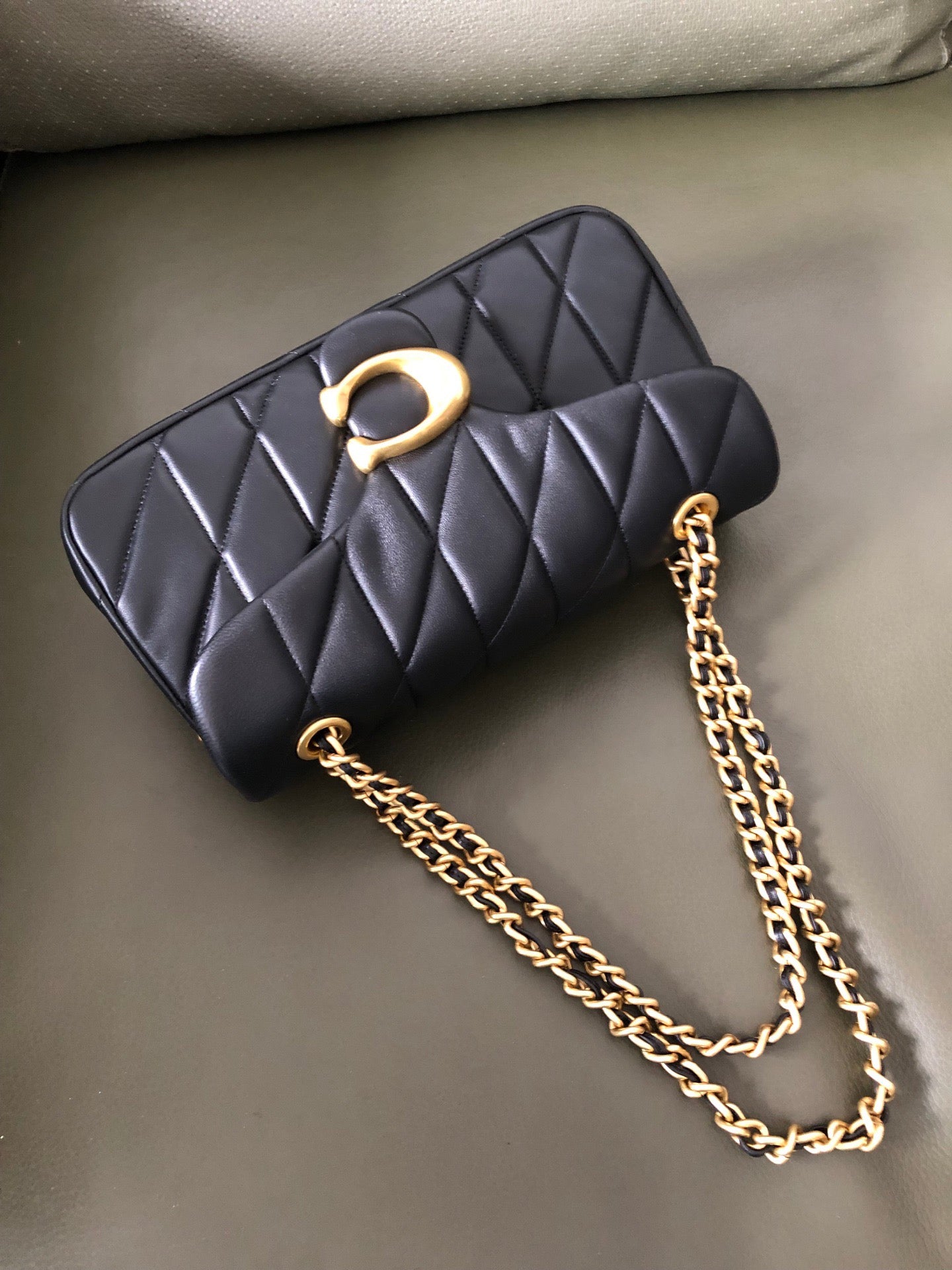 Authentic Co*ch Tabb* Shoulder Bag 26 with Quilting