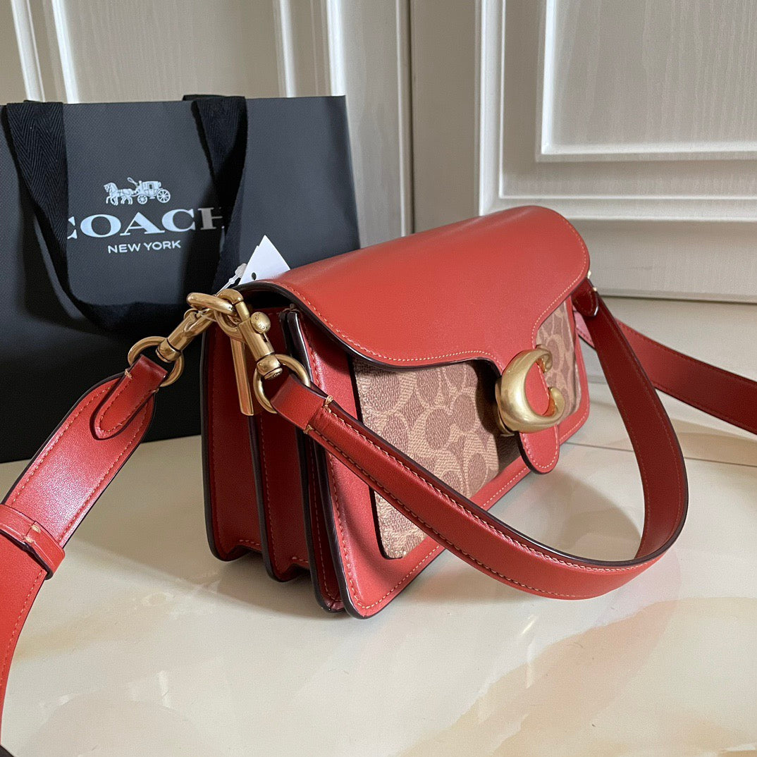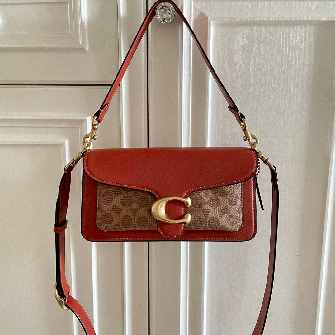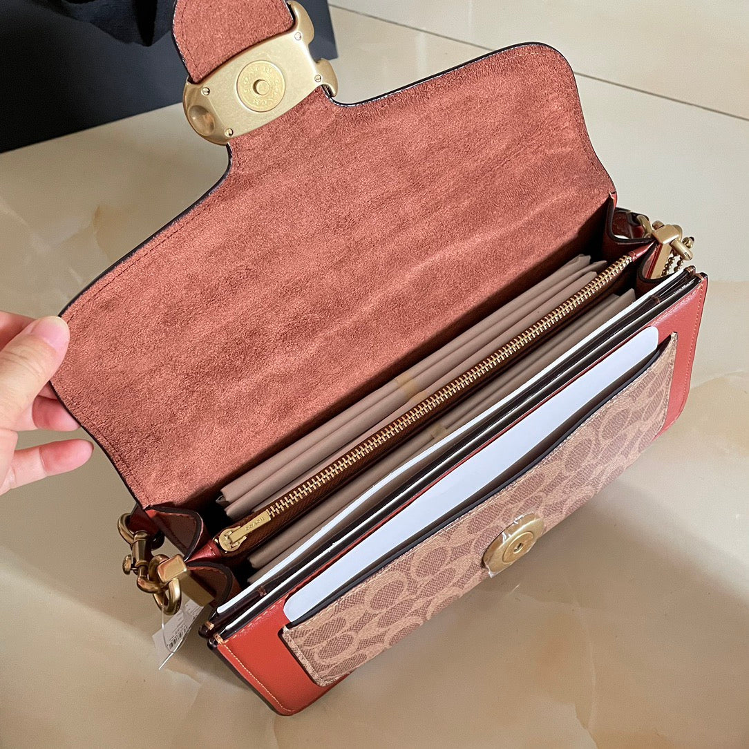 Authentic Co*ch Tabb*y Coated Canvas Signature in Tan Rust