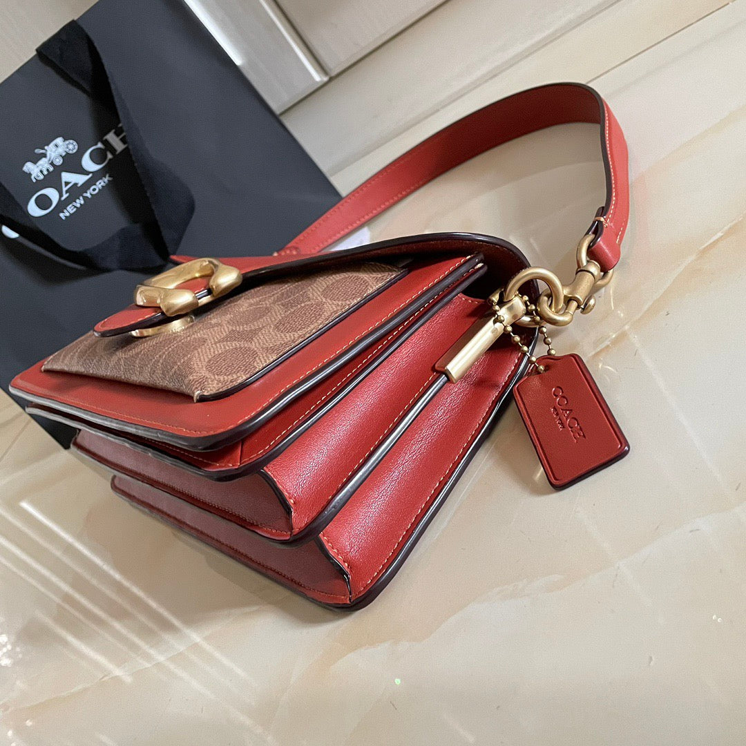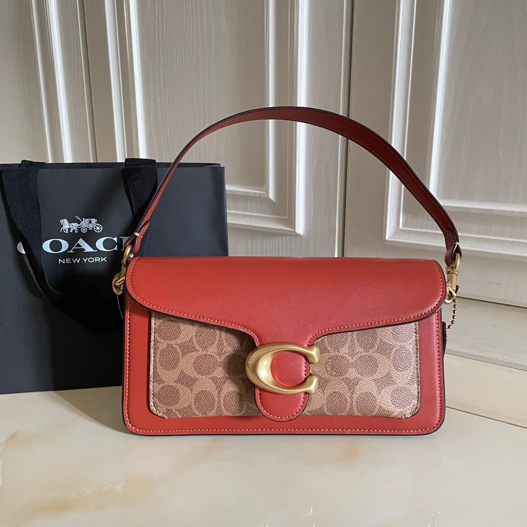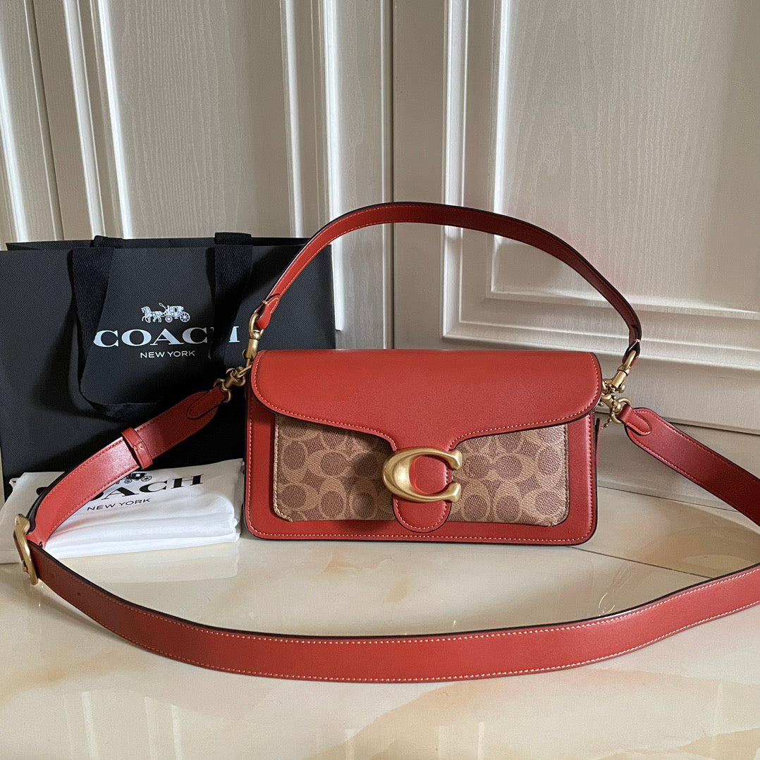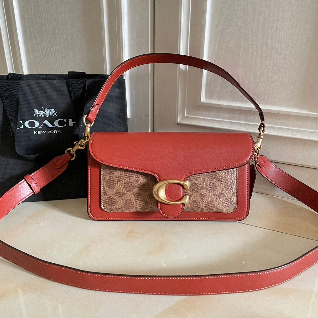 Authentic Co*ch Tabb*y Coated Canvas Signature in Tan Rust
