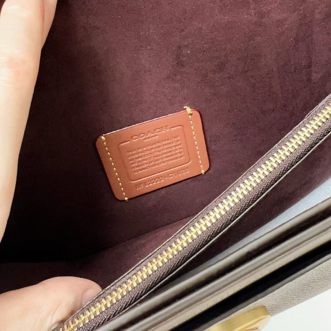 Authentic Coa*h Tabb* Shoulder Bag 26 In Signature Canvas Brass Maple